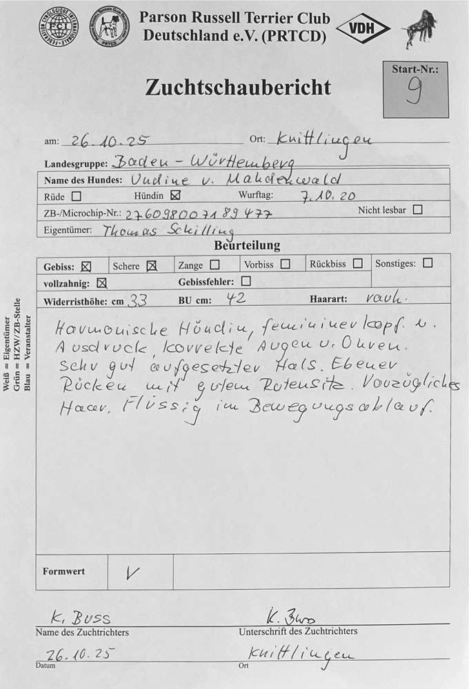 Wir waren am 26.10. mit Tyra (Undine vom Mahdenwald) auf einer Zuchtschau in Knittlingen. Sie erhielt einen vorzüglichen Formwert mit einer schönen Beurteilung.